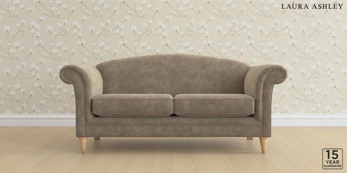 6.12.1 Buy Gloucester by Laura Ashley 3 Seater Small Sofa Alwyn Velvet Truffle Natural Low Turned - Light Oak from the Laura Ashley online shop Click here to use our website with more accessibility support, for example screen readers