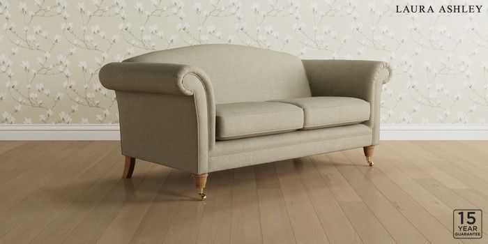 6.12.1 Buy Gloucester by Laura Ashley 3 Seater Small Sofa Anneliese Natural Low Brass Castor - Light Oak from the Laura Ashley online shop Click here to use our website with more accessibility support, for example screen readers