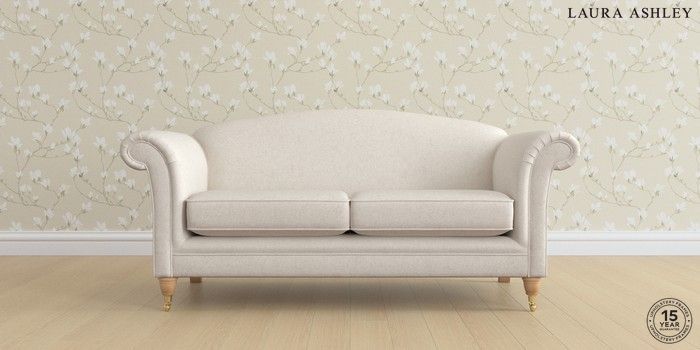 7.2.6 Buy Gloucester by Laura Ashley 3 Seater Small Sofa Anneliese Oyster Natural Low Brass Castor - Light Oak from the Laura Ashley online shop Click here to use our website with more accessibility support, for example screen readers