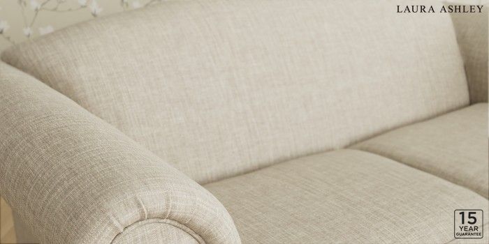 6.12.13 Buy Gloucester by Laura Ashley 3 Seater Small Sofa Bainton Natural Low Chrome Castor - Teak from the Laura Ashley online shop Click here to use our website with more accessibility support, for example screen readers