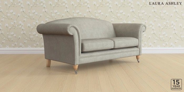 6.12.1 Buy Gloucester by Laura Ashley 3 Seater Small Sofa Bainton Pale Steel Grey Low Chrome Castor - Light Oak from the Laura Ashley online shop Click here to use our website with more accessibility support, for example screen readers