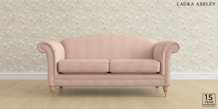 6.12.1 Buy Gloucester by Laura Ashley 3 Seater Small Sofa Edwin Chenille Blush Pink Low Brass Castor - Light Oak from the Laura Ashley online shop Click here to use our website with more accessibility support, for example screen readers