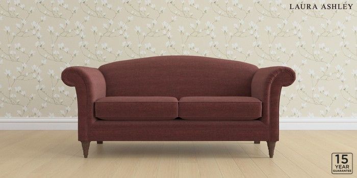 7.0.3 Buy Gloucester by Laura Ashley 3 Seater Small Sofa Edwin Chenille Burgundy Red Low Turned - Chestnut from the Laura Ashley online shop Click here to use our website with more accessibility support, for example screen readers
