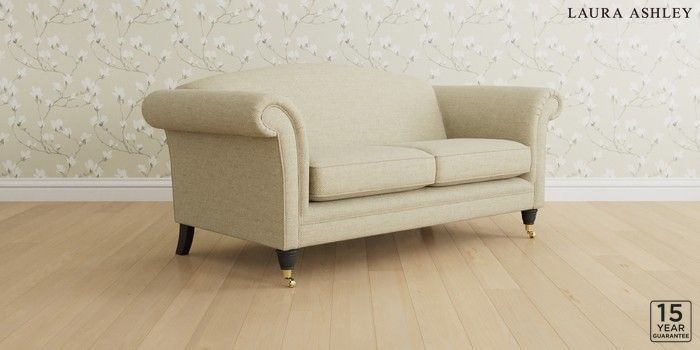 6.12.1 Buy Gloucester by Laura Ashley 3 Seater Small Sofa Harley Natural Low Brass Castor - Black from the Laura Ashley online shop Click here to use our website with more accessibility support, for example screen readers