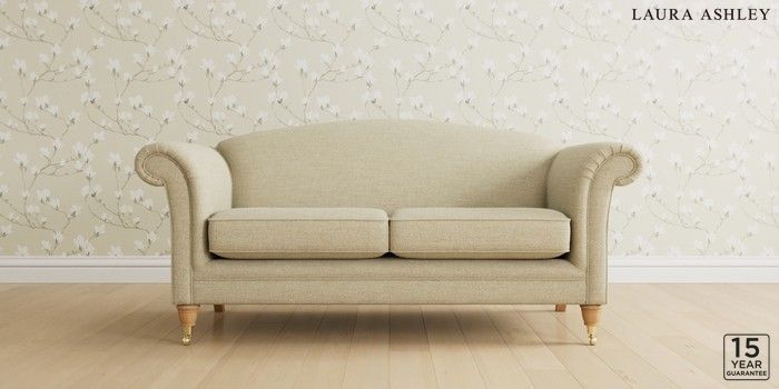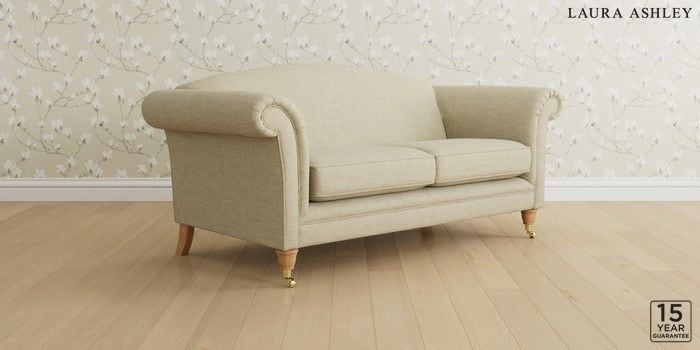 6.12.1 Buy Gloucester by Laura Ashley 3 Seater Small Sofa Harley Natural Low Brass Castor - Light Oak from the Laura Ashley online shop Click here to use our website with more accessibility support, for example screen readers