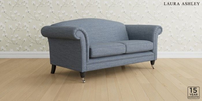 7.0.3 Buy Gloucester by Laura Ashley 3 Seater Small Sofa Harley Seaspray Blue Low Chrome Castor - Black from the Laura Ashley online shop Click here to use our website with more accessibility support, for example screen readers