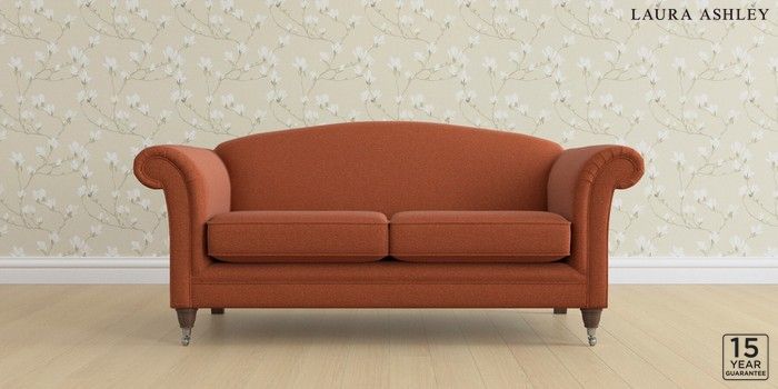 6.12.1 Buy Gloucester by Laura Ashley 3 Seater Small Sofa Harley Terracotta Orange Low Chrome Castor - Chestnut from the Laura Ashley online shop Click here to use our website with more accessibility support, for example screen readers