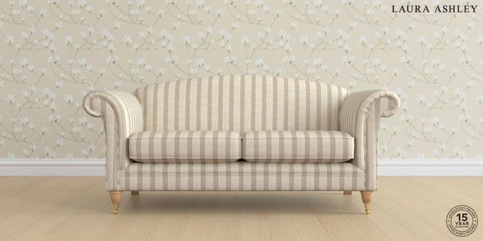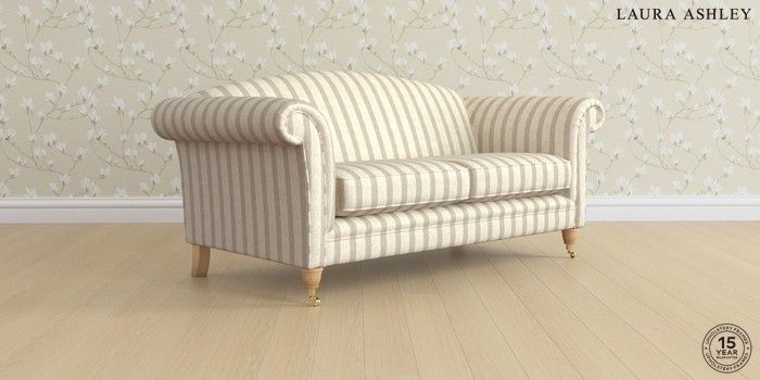 6.12.1 Buy Gloucester by Laura Ashley 3 Seater Small Sofa Kinsham Stripe Natural Low Brass Castor - Light Oak from the Laura Ashley online shop Click here to use our website with more accessibility support, for example screen readers