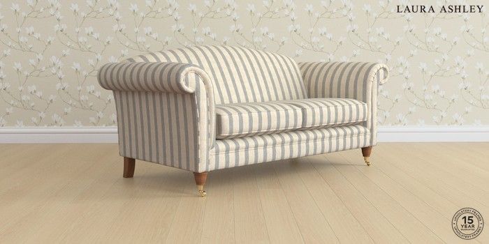 6.12.1 Buy Gloucester by Laura Ashley 3 Seater Small Sofa Kinsham Stripe Seaspray Blue Low Brass Castor - Teak from the Laura Ashley online shop Click here to use our website with more accessibility support, for example screen readers