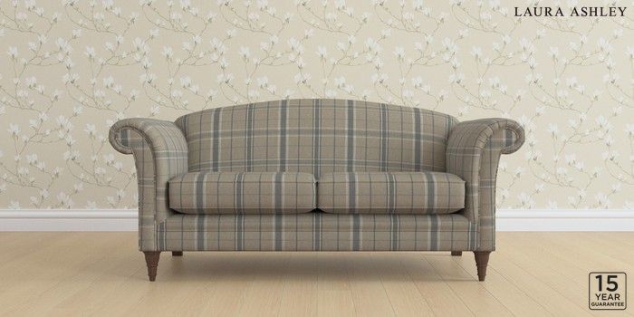 6.12.13 Buy Gloucester by Laura Ashley 3 Seater Small Sofa Longstowe Check French Grey Low Turned - Chestnut from the Laura Ashley online shop Click here to use our website with more accessibility support, for example screen readers