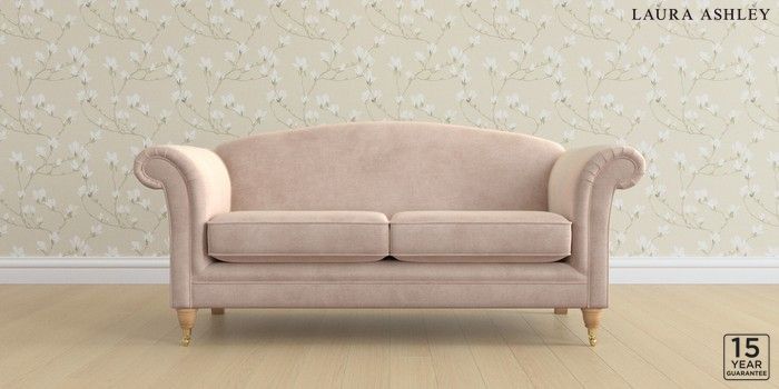 6.12.1 Buy Gloucester by Laura Ashley 3 Seater Small Sofa Orla Chalk Pink Low Brass Castor - Light Oak from the Laura Ashley online shop Click here to use our website with more accessibility support, for example screen readers