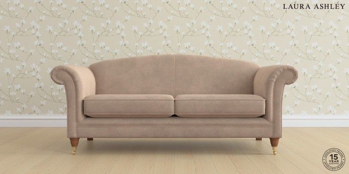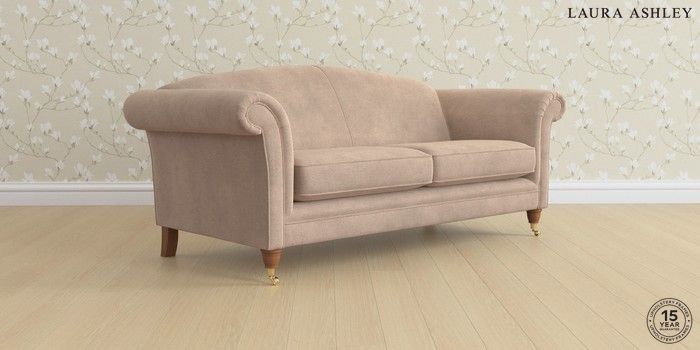6.12.1 Buy Gloucester by Laura Ashley 3 Seater Sofa Ailsworth Mink Natural Low Brass Castor - Teak from the Laura Ashley online shop Click here to use our website with more accessibility support, for example screen readers