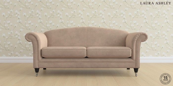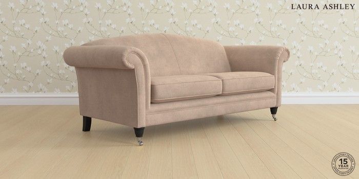 6.12.1 Buy Gloucester by Laura Ashley 3 Seater Sofa Ailsworth Mink Natural Low Chrome Castor - Black from the Laura Ashley online shop Click here to use our website with more accessibility support, for example screen readers