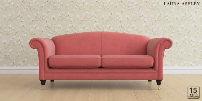 6.12.13 Buy Gloucester by Laura Ashley 3 Seater Sofa Ailsworth Old Rose Pink Low Brass Castor - Black from the Laura Ashley online shop Click here to use our website with more accessibility support, for example screen readers