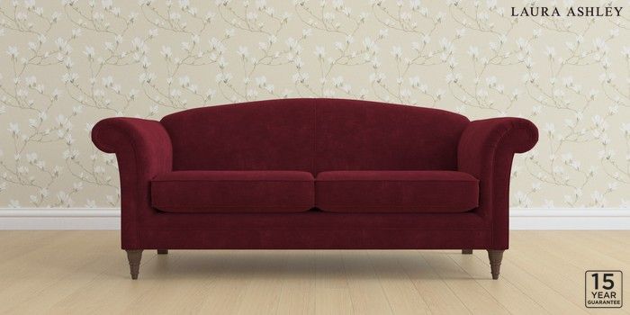 6.12.1 Buy Gloucester by Laura Ashley 3 Seater Sofa Alwyn Velvet Burgundy Red Low Turned - Chestnut from the Laura Ashley online shop Click here to use our website with more accessibility support, for example screen readers
