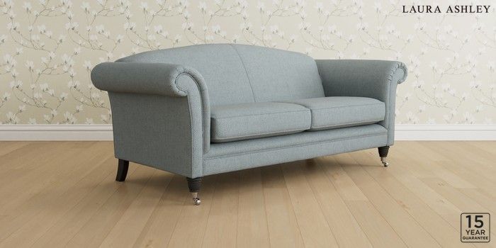 6.12.1 Buy Gloucester by Laura Ashley 3 Seater Sofa Anneliese Seaspray Blue Low Chrome Castor - Black from the Laura Ashley online shop Click here to use our website with more accessibility support, for example screen readers