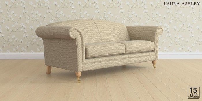 6.12.13 Buy Gloucester by Laura Ashley 3 Seater Sofa Chequers Hazelnut Natural Low Brass Castor - Light Oak from the Laura Ashley online shop Click here to use our website with more accessibility support, for example screen readers