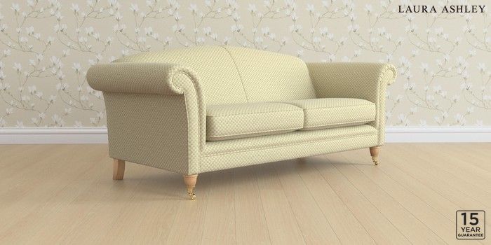 6.12.1 Buy Gloucester by Laura Ashley 3 Seater Sofa Chequers Hedgerow Green Low Brass Castor - Light Oak from the Laura Ashley online shop Click here to use our website with more accessibility support, for example screen readers