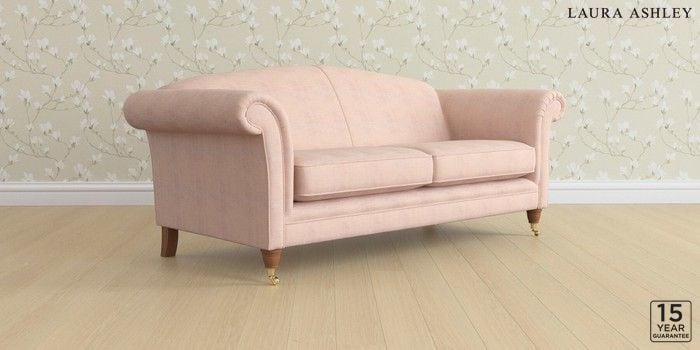 6.12.1 Buy Gloucester by Laura Ashley 3 Seater Sofa Edwin Chenille Blush Pink Low Brass Castor - Teak from the Laura Ashley online shop Click here to use our website with more accessibility support, for example screen readers