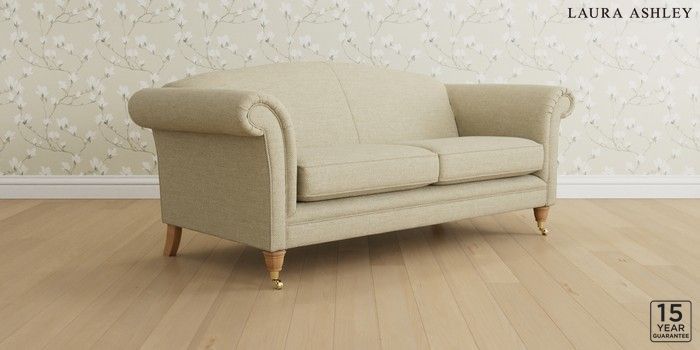 6.12.1 Buy Gloucester by Laura Ashley 3 Seater Sofa Harley Natural Low Brass Castor - Light Oak from the Laura Ashley online shop Click here to use our website with more accessibility support, for example screen readers