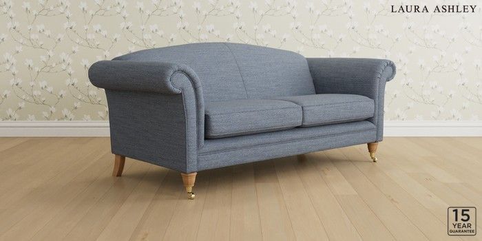 6.12.13 Buy Gloucester by Laura Ashley 3 Seater Sofa Harley Seaspray Blue Low Brass Castor - Light Oak from the Laura Ashley online shop Click here to use our website with more accessibility support, for example screen readers