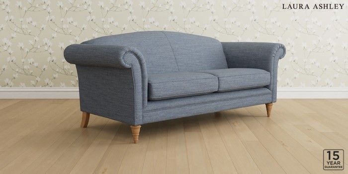 6.12.1 Buy Gloucester by Laura Ashley 3 Seater Sofa Harley Seaspray Blue Low Turned - Light Oak from the Laura Ashley online shop Click here to use our website with more accessibility support, for example screen readers