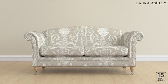 6.12.13 Buy Gloucester by Laura Ashley 3 Seater Sofa Josette Champagne Natural Low Chrome Castor - Light Oak from the Laura Ashley online shop Click here to use our website with more accessibility support, for example screen readers