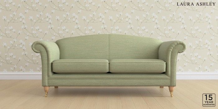 6.12.13 Buy Gloucester by Laura Ashley 3 Seater Sofa Kinsham Hedgerow Green Low Brass Castor - Light Oak from the Laura Ashley online shop Click here to use our website with more accessibility support, for example screen readers