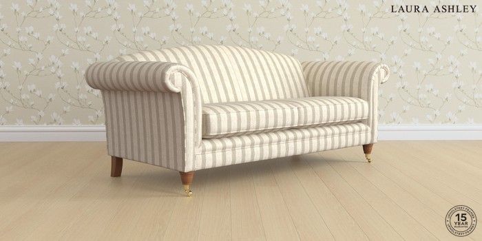 6.12.1 Buy Gloucester by Laura Ashley 3 Seater Sofa Kinsham Stripe Natural Low Brass Castor - Teak from the Laura Ashley online shop Click here to use our website with more accessibility support, for example screen readers