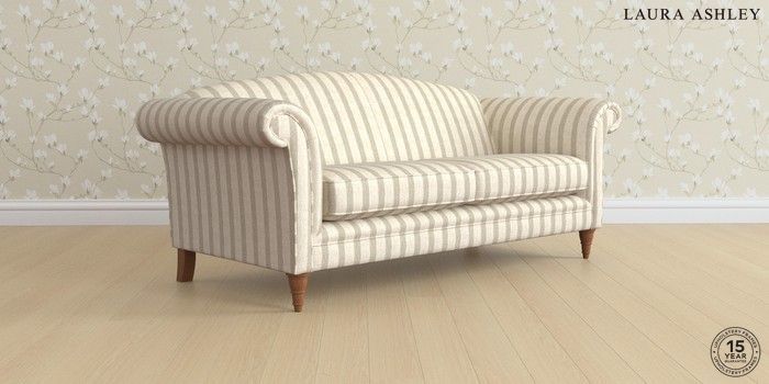 6.12.1 Buy Gloucester by Laura Ashley 3 Seater Sofa Kinsham Stripe Natural Low Turned - Teak from the Laura Ashley online shop Click here to use our website with more accessibility support, for example screen readers