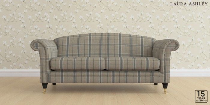 6.12.1 Buy Gloucester by Laura Ashley 3 Seater Sofa Longstowe Check French Grey Low Brass Castor - Black from the Laura Ashley online shop Click here to use our website with more accessibility support, for example screen readers