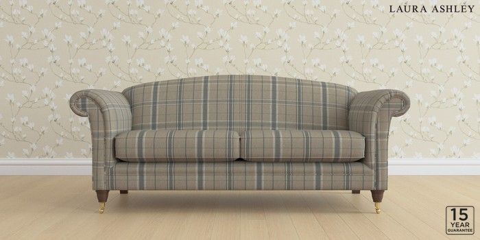 6.12.1 Buy Gloucester by Laura Ashley 3 Seater Sofa Longstowe Check French Grey Low Brass Castor - Chestnut from the Laura Ashley online shop Click here to use our website with more accessibility support, for example screen readers