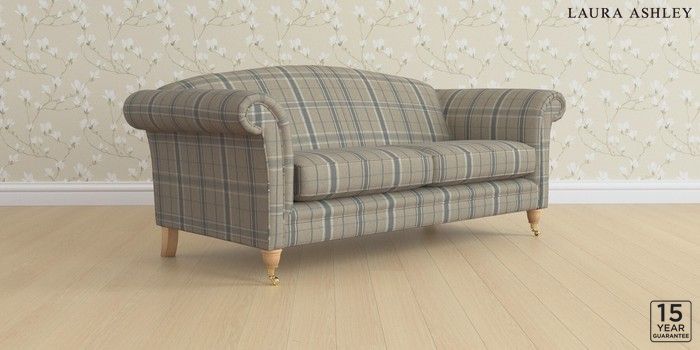 6.12.1 Buy Gloucester by Laura Ashley 3 Seater Sofa Longstowe Check French Grey Low Brass Castor - Light Oak from the Laura Ashley online shop Click here to use our website with more accessibility support, for example screen readers