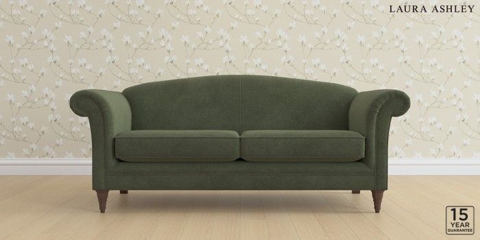 6.12.13 Buy Gloucester by Laura Ashley 3 Seater Sofa Lundar Chenille Ivy Green Low Turned - Chestnut from the Laura Ashley online shop Click here to use our website with more accessibility support, for example screen readers