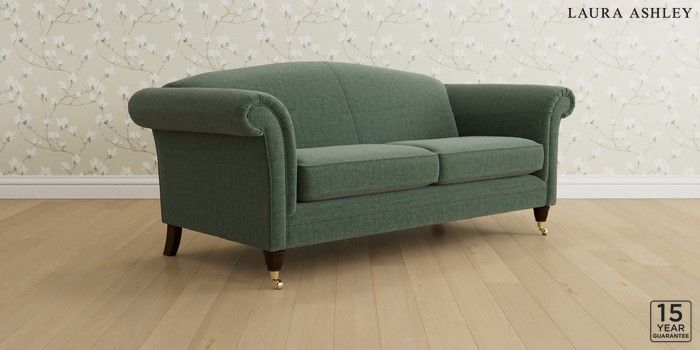 6.12.13 Buy Gloucester by Laura Ashley 3 Seater Sofa Nantmor Fern Green Low Brass Castor - Chestnut from the Laura Ashley online shop Click here to use our website with more accessibility support, for example screen readers