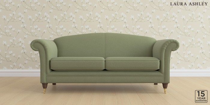 6.12.13 Buy Gloucester by Laura Ashley 3 Seater Sofa Peyton Hedgerow Green Low Brass Castor - Chestnut from the Laura Ashley online shop Click here to use our website with more accessibility support, for example screen readers