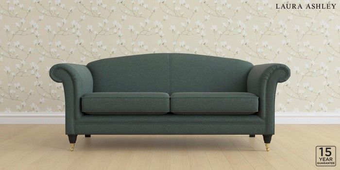 6.12.1 Buy Gloucester by Laura Ashley 3 Seater Sofa Wooton Forest Green Low Brass Castor - Black from the Laura Ashley online shop Click here to use our website with more accessibility support, for example screen readers