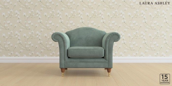 6.12.13 Buy Gloucester by Laura Ashley Armchair Ailsworth Fern Green Low Brass Castor - Teak from the Laura Ashley online shop Click here to use our website with more accessibility support, for example screen readers
