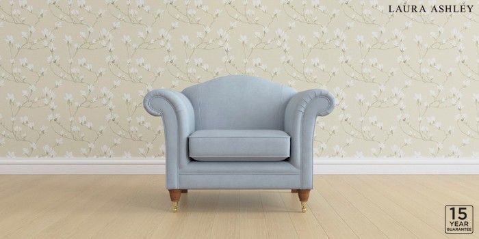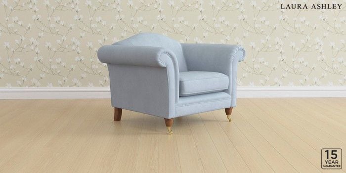 6.12.1 Buy Gloucester by Laura Ashley Armchair Ailsworth Newport Blue Low Brass Castor - Teak from the Laura Ashley online shop Click here to use our website with more accessibility support, for example screen readers