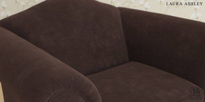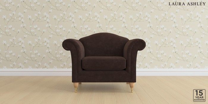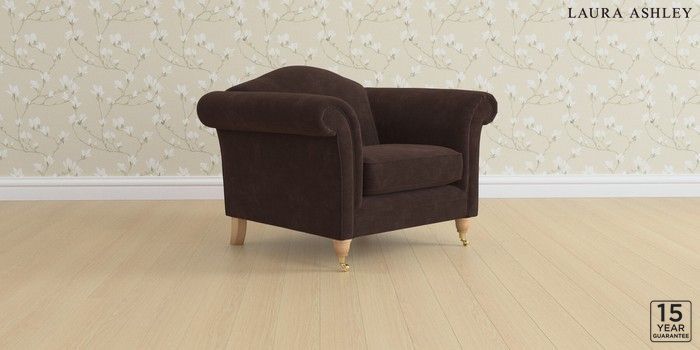 6.12.13 Buy Gloucester by Laura Ashley Armchair Alwyn Velvet Chocolate Brown Low Brass Castor - Light Oak from the Laura Ashley online shop Click here to use our website with more accessibility support, for example screen readers