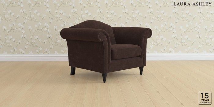 6.12.1 Buy Gloucester by Laura Ashley Armchair Alwyn Velvet Chocolate Brown Low Turned - Black from the Laura Ashley online shop Click here to use our website with more accessibility support, for example screen readers