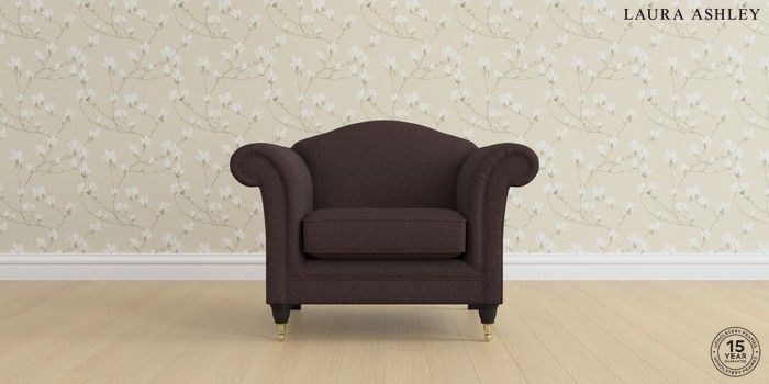 7.0.3 Buy Gloucester by Laura Ashley Armchair Bainton Chocolate Brown Low Brass Castor - Black from the Laura Ashley online shop Click here to use our website with more accessibility support, for example screen readers