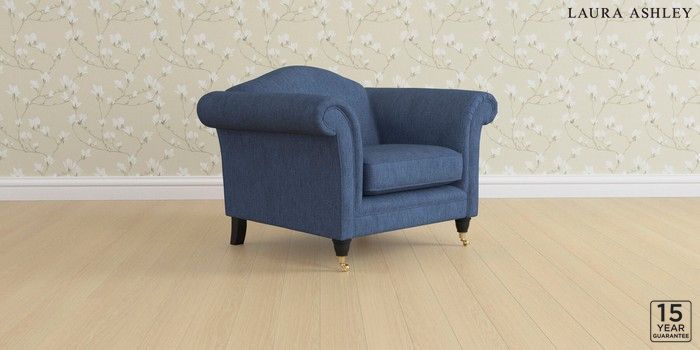 6.12.13 Buy Gloucester by Laura Ashley Armchair Bainton Midnight Navy Low Brass Castor - Black from the Laura Ashley online shop Click here to use our website with more accessibility support, for example screen readers