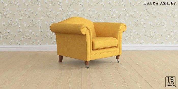 6.12.1 Buy Gloucester by Laura Ashley Armchair Bainton Ochre Yellow Low Chrome Castor - Teak from the Laura Ashley online shop Click here to use our website with more accessibility support, for example screen readers