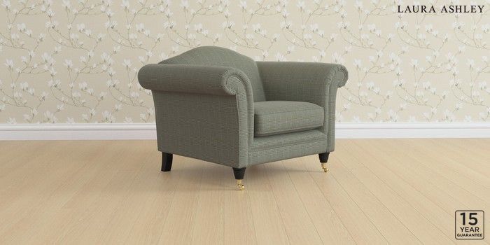 6.12.1 Buy Gloucester by Laura Ashley Armchair Birchgrove Check Olive Green Low Brass Castor - Black from the Laura Ashley online shop Click here to use our website with more accessibility support, for example screen readers