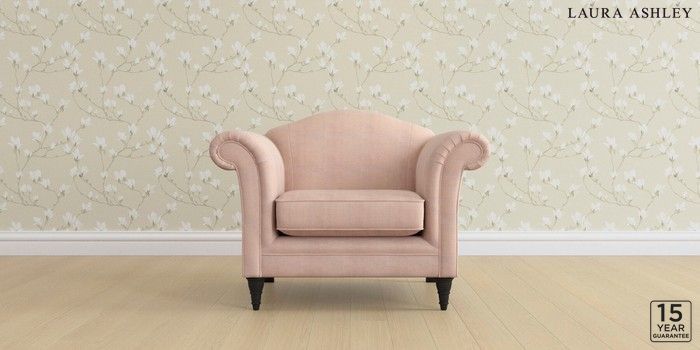 6.12.13 Buy Gloucester by Laura Ashley Armchair Edwin Chenille Blush Pink Low Turned - Black from the Laura Ashley online shop Click here to use our website with more accessibility support, for example screen readers