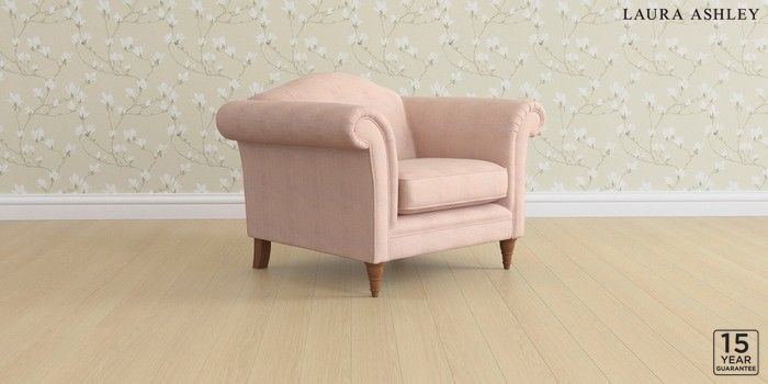 6.12.13 Buy Gloucester by Laura Ashley Armchair Edwin Chenille Blush Pink Low Turned - Teak from the Laura Ashley online shop Click here to use our website with more accessibility support, for example screen readers