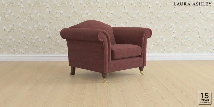 6.12.1 Buy Gloucester by Laura Ashley Armchair Edwin Chenille Burgundy Red Low Brass Castor - Chestnut from the Laura Ashley online shop Click here to use our website with more accessibility support, for example screen readers