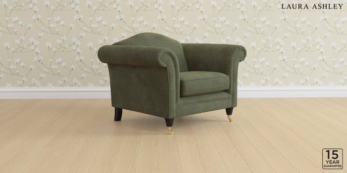 6.12.1 Buy Gloucester by Laura Ashley Armchair Edwin Chenille Hedgerow Green Low Brass Castor - Black from the Laura Ashley online shop Click here to use our website with more accessibility support, for example screen readers