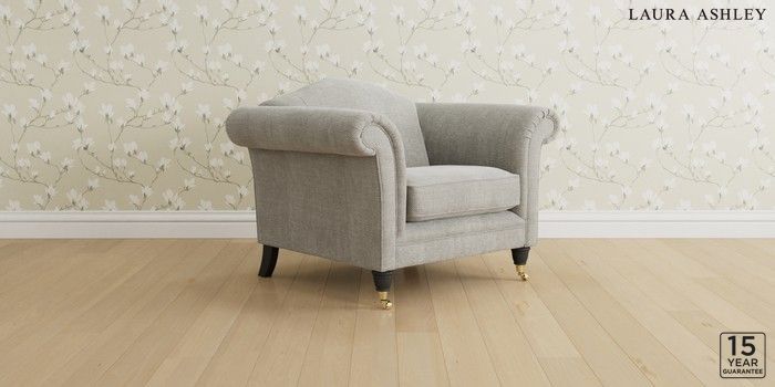 6.12.13 Buy Gloucester by Laura Ashley Armchair Edwin Chenille Silver Grey Low Brass Castor - Black from the Laura Ashley online shop Click here to use our website with more accessibility support, for example screen readers